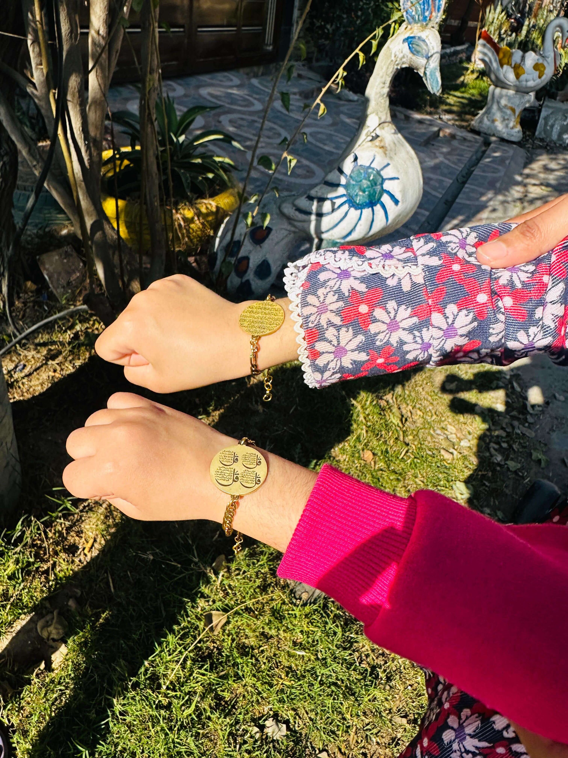 Designed with love, the bracelet features Ayat ul Kursi engraved on one side, offering protection and blessings, while the 4 Qul is elegantly engraved on the other side for spiritual well-being. Made with a gold-plated finish, the bracelet adds a touch of elegance, while its adjustable chain ensures a perfect fit for children ages 1 to 14 years.